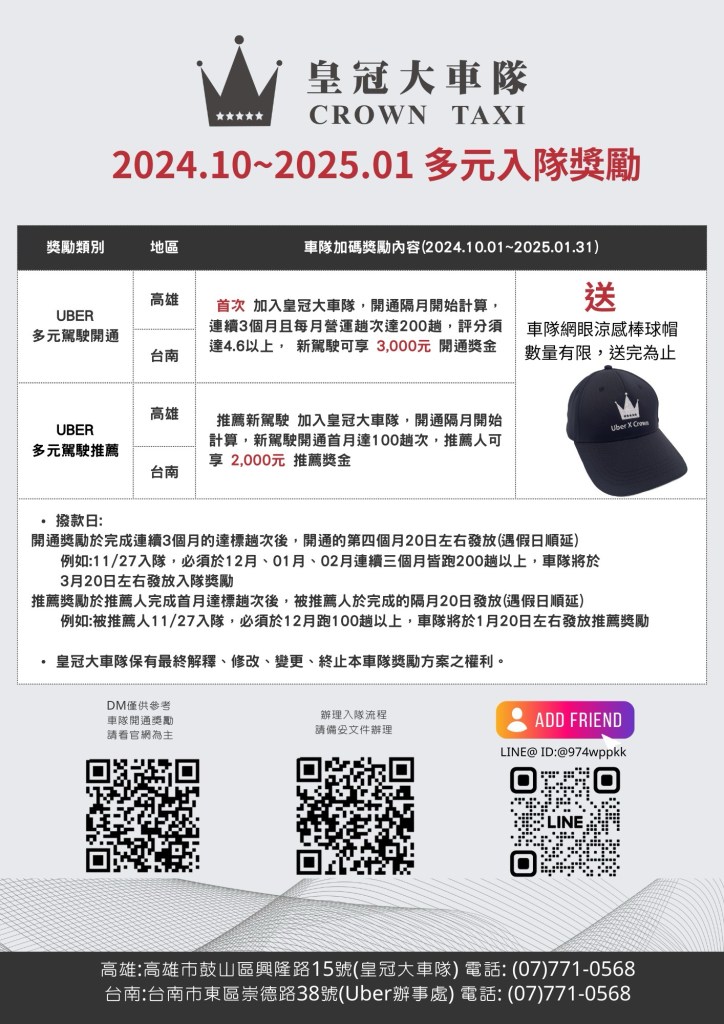 *(1)歡迎舊雨新知轉隊/新手入隊加入Uber 高雄皇冠大車隊。
